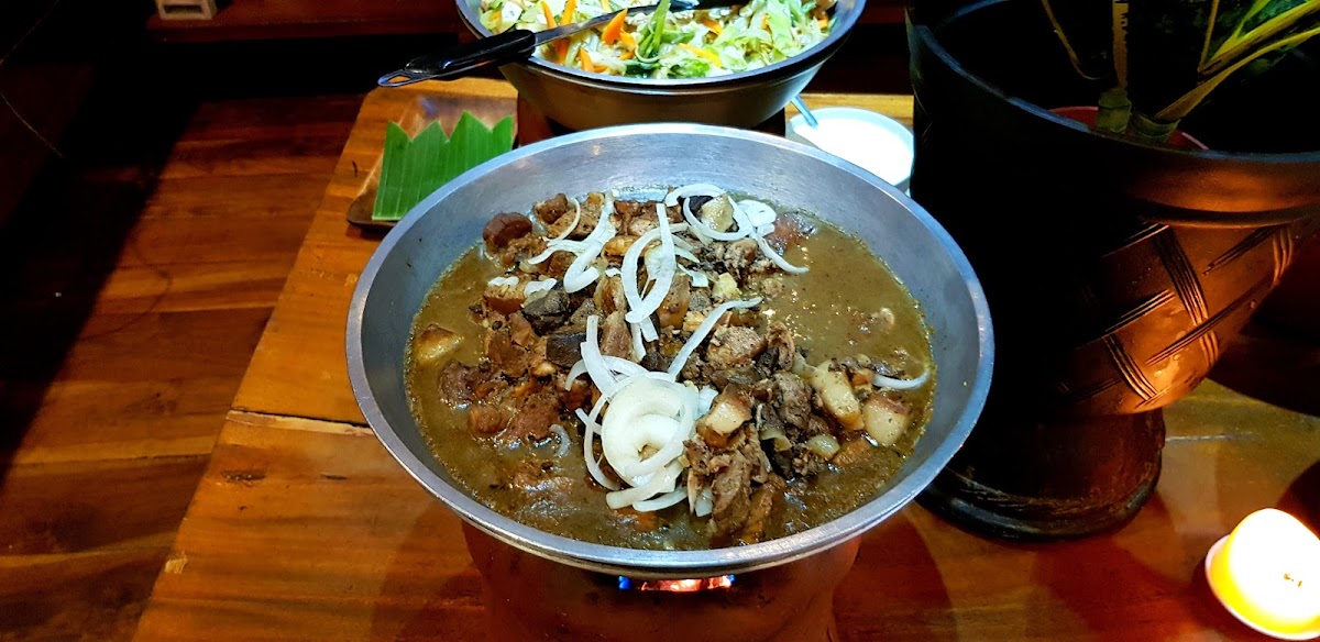 One of the standout dishes on the menu is the Native Adobo. This beloved Filipino classic is prepared with tender meat that is perfectly marinated in a mix of soy sauce, vinegar, garlic, and spices, slow-cooked to bring out deep, savory flavors. It’s a dish that showcases the essence of Filipino home cooking, making it an absolute favorite for many guests. Another must-try is the Beef Caldereta, a hearty stew made with beef simmered in a rich tomato-based sauce, enhanced with potatoes, carrots, and bell peppers. The balance of spices and flavors makes this dish a delightful indulgence for anyone who loves rich, savory stews.